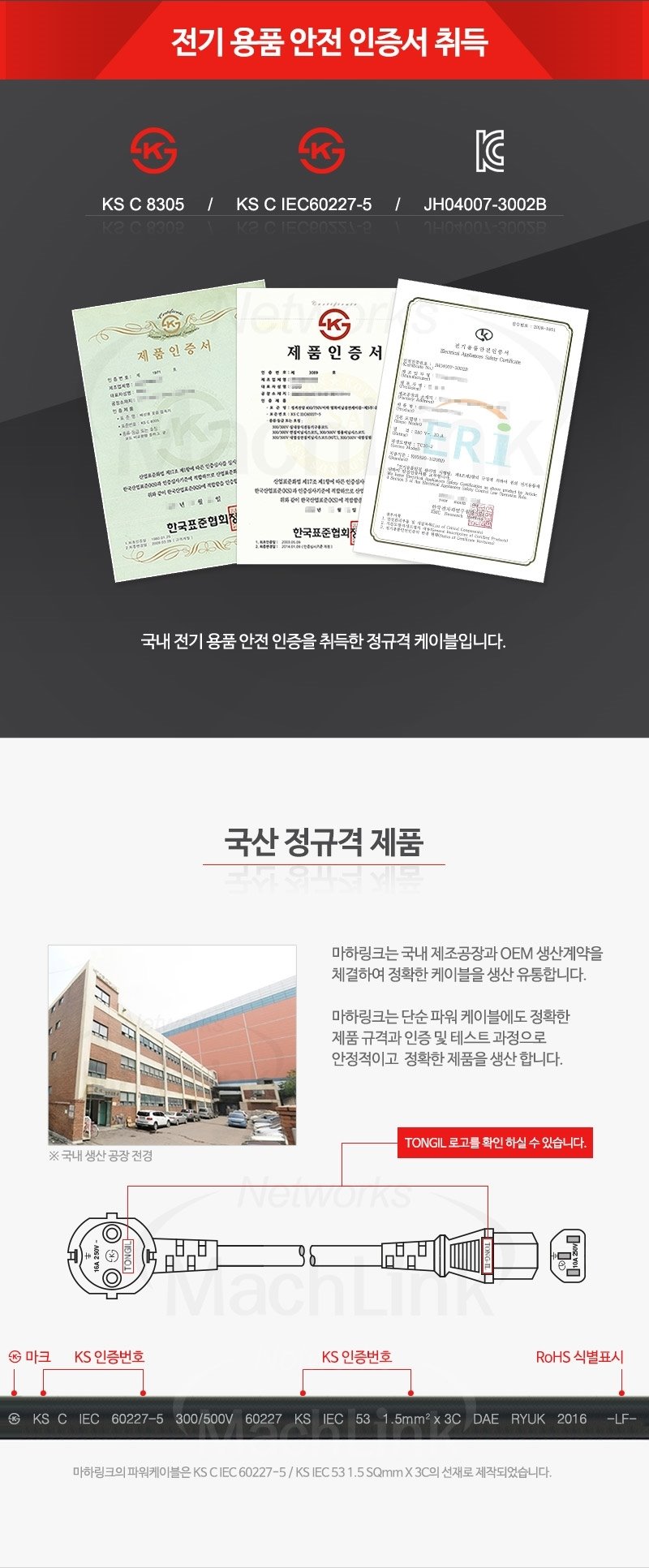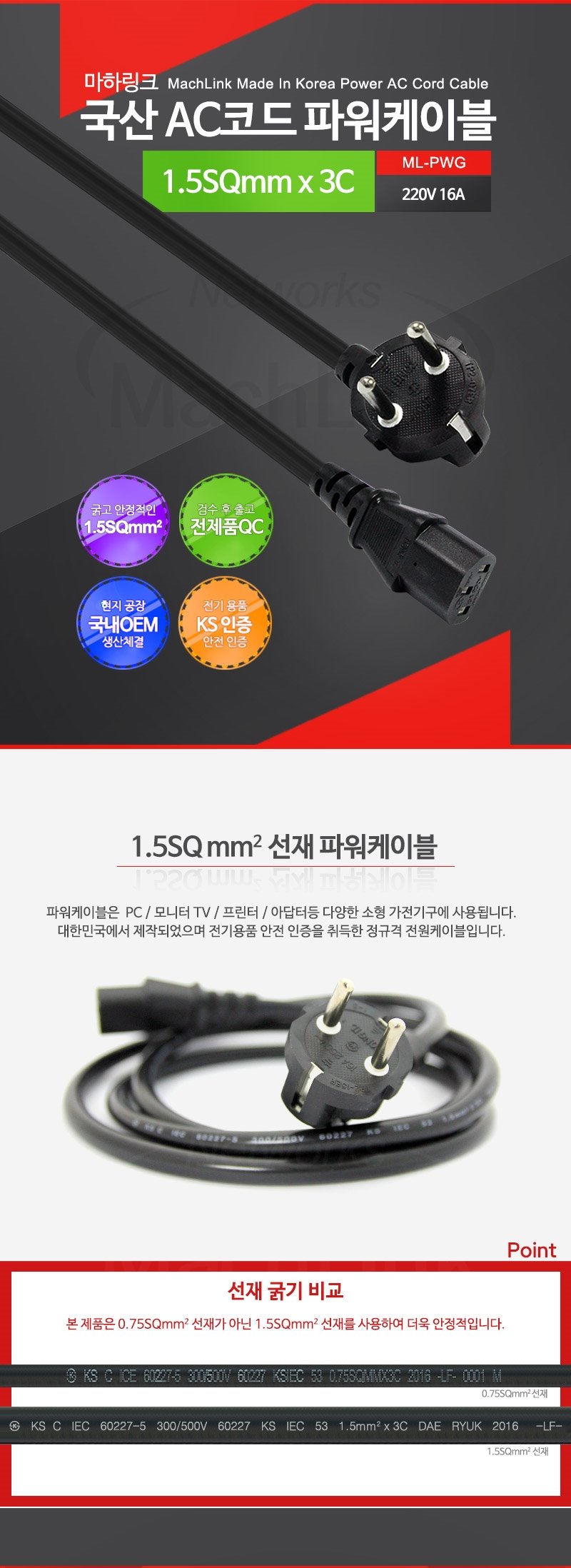 마하링크 국산 AC코드 16A 파워케이블 2M