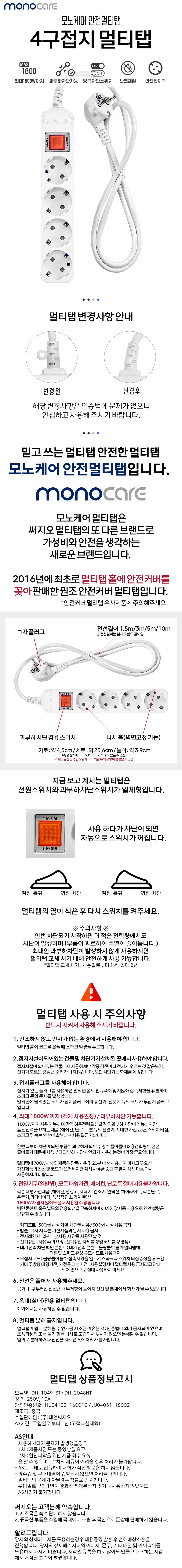 4구 접지 10A 안전 멀티 탭 콘센트 1.5M(메인스위치)